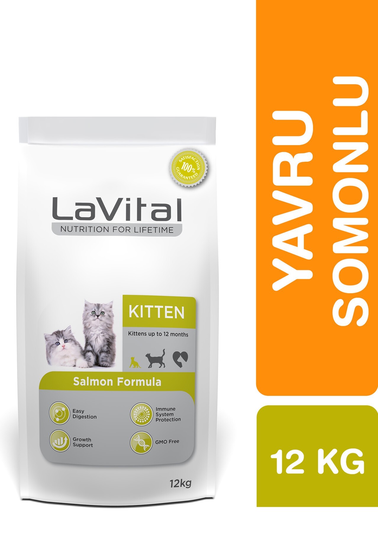LaVital Somonlu Yavru Kedi Maması 12 kg, 3 haftalık ile 12 aylık yavru kedilerin sağlıklı büyüme ve gelişim sürecini desteklemek için özel olarak formüle edilmiş premium kuru kedi mamasıdır. Yüksek kaliteli somon proteini içeriği sayesinde kas gelişimini desteklerken, dengeli vitamin ve mineral yapısı ile bağışıklık sisteminin güçlenmesine katkı sağlar.
