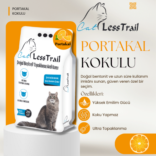 Less Trail 20 Lt İnce Tane Portakal Kokulu Beyaz Bentonit Kedi Kumu, kedinizin tuvalet alanında hijyen ve ferahlık sunan özel bir üründür. İnce taneli yapısı sayesinde sıvıyı hızlıca emer ve sağlam topaklar oluşturarak temizlik işlemini kolaylaştırır.