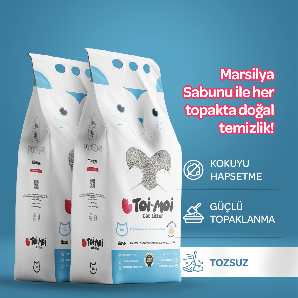 Toi Moi 2’li Avantajlı Paket - marsilya sabunu kokulu sodyum bentonit kedi kumu ile kediniz ve eviniz hep temiz kokar!