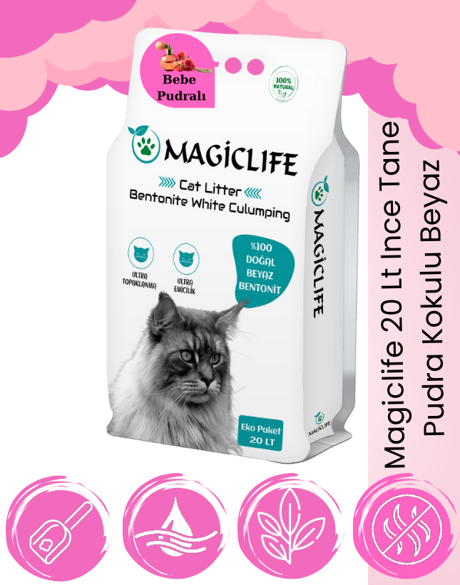 Magiclife 20 Lt Ince Tane Pudra Kokulu Beyaz Bentonit Kedi Kumu