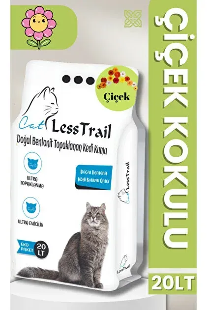 LESS Trail 20 Lt Ince Tane Çiçek Kokulu Beyaz Bentonit Kedi Kumu
