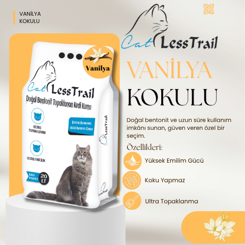 Less Trail Vanilya Kokulu Kedi Kumu, yüksek performansı ve hoş kokusuyla kedinizin tuvalet alışkanlıklarını destekler, evinizde temiz ve ferah bir ortam yaratır.