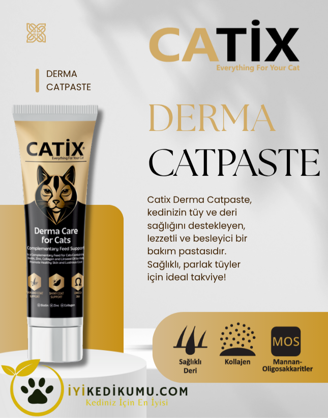 Catix DermaCat Paste ile kedinizin cilt ve tüy sağlığını iyileştirmek için doğru çözümü keşfedin. Özenle hazırlanmış formülasyonu ile ihtiyaç duydukları hayati besinleri almalarını sağlar.